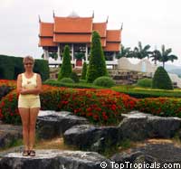 We spent a week in Bangkok in March 2005. It was our first visit to this wonderful Asian country and we were greatly impressed by the beauty of Thai Nature and nice relaxing atmosphere around us. Thai style of life is probably a bit slow to compare with our American rush, although Bangkok is a huge busy city with crazy traffic and crowded streets. However, even in the city the life of Thai people is surrounded by beautiful plants and fragrant flowers, which are everywhere, on the streets in ground and in pots, hanging from fences, walls and out of windows. Within just one week we took over 2000 pictures. Below are the best of them that we share with you, they are arranged in several sections-galleries for easy navigating. Try to imagine the real Tropic beauty and feel the scents...
