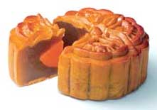 Chinese Moon Cakes. Every Chinese holiday is accompanied by some sort of special food. Moon Cakes are eaten on Chinese New Year which is based on the Lunar calendar (and the little treats look like the moon). They are also eaten as part of an autumn, harvest type celebration which falls on the 15th day of the 8th lunar month.On the Moon Festival, people eat moon cakes, a kind of cookie with fillings. Sweet fillings are made of sugar, Walnuts, sesame, osmanthus flowers, rose petals, sweetened tangerine peel, bean paste, or jujube paste. The surface of the food is patterned with clouds, the moon, the rabbit. Some cakes will be sent to absent ones or saved at home for them.