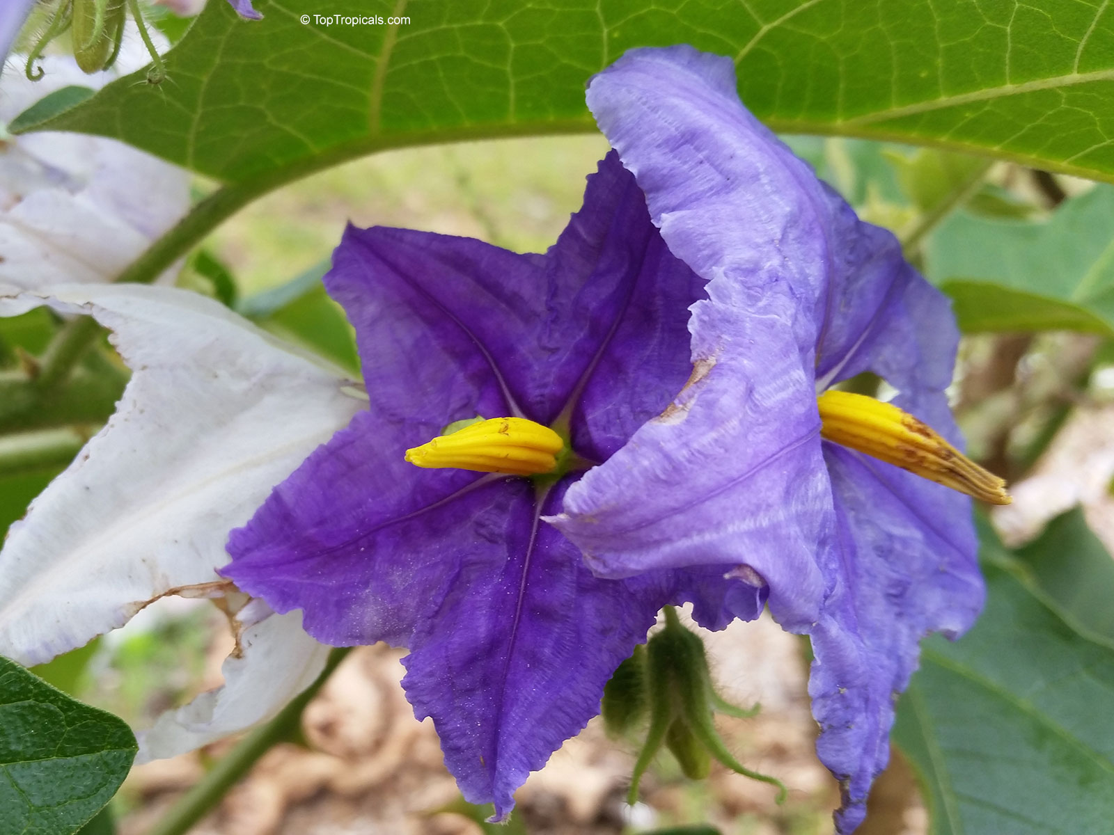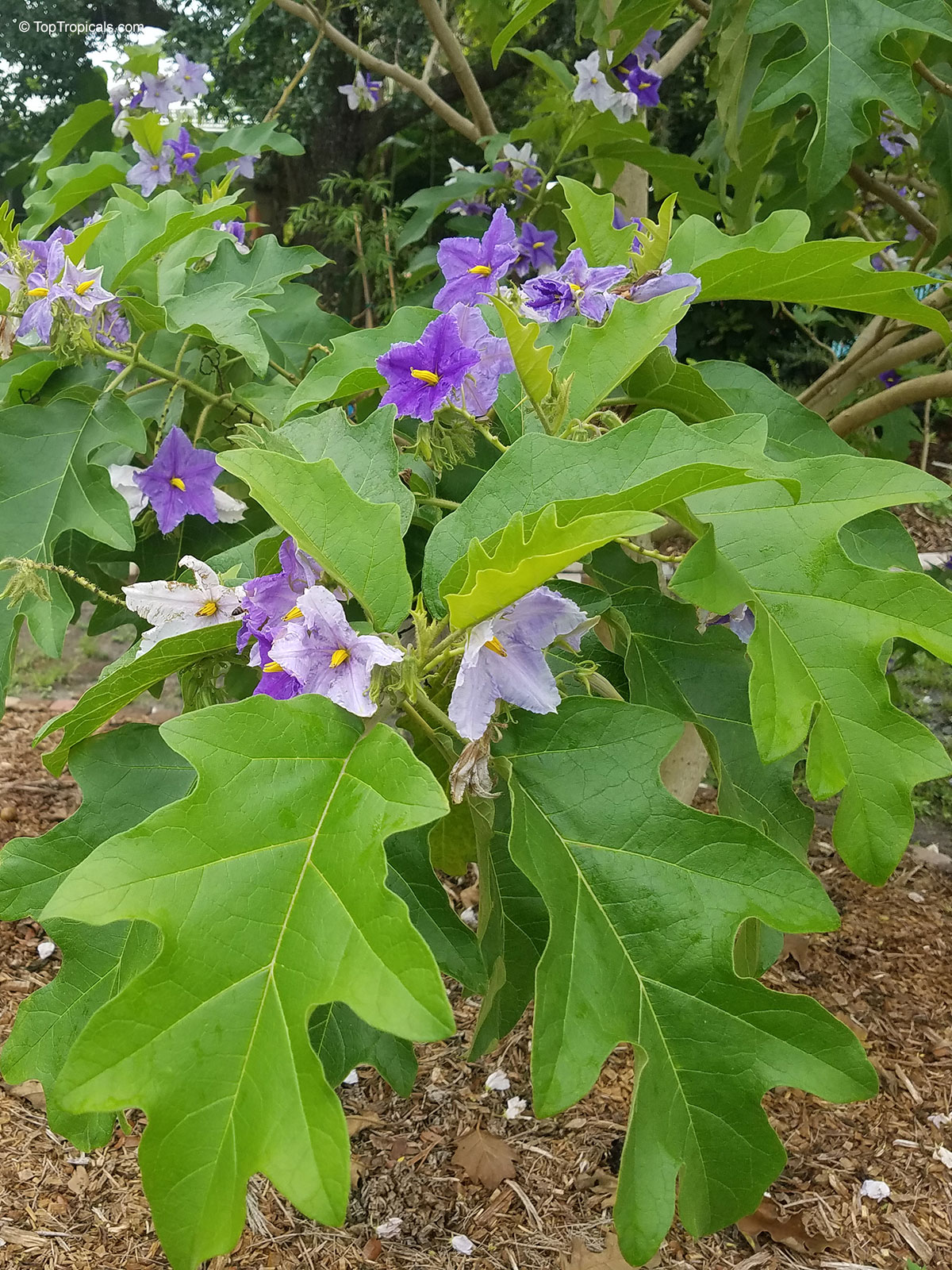 Giant Potato tree. Showy fast growing specimen tree of small to medium size. This plant grows quickly into a bushy tree of 15 feet in height and 15' wide. The leaves are large, lobed and prickly. Flowers are fragrant and change their color from white to pink to lavender. This tree is a great choice if you need to create shade over your driveway within just a few months!