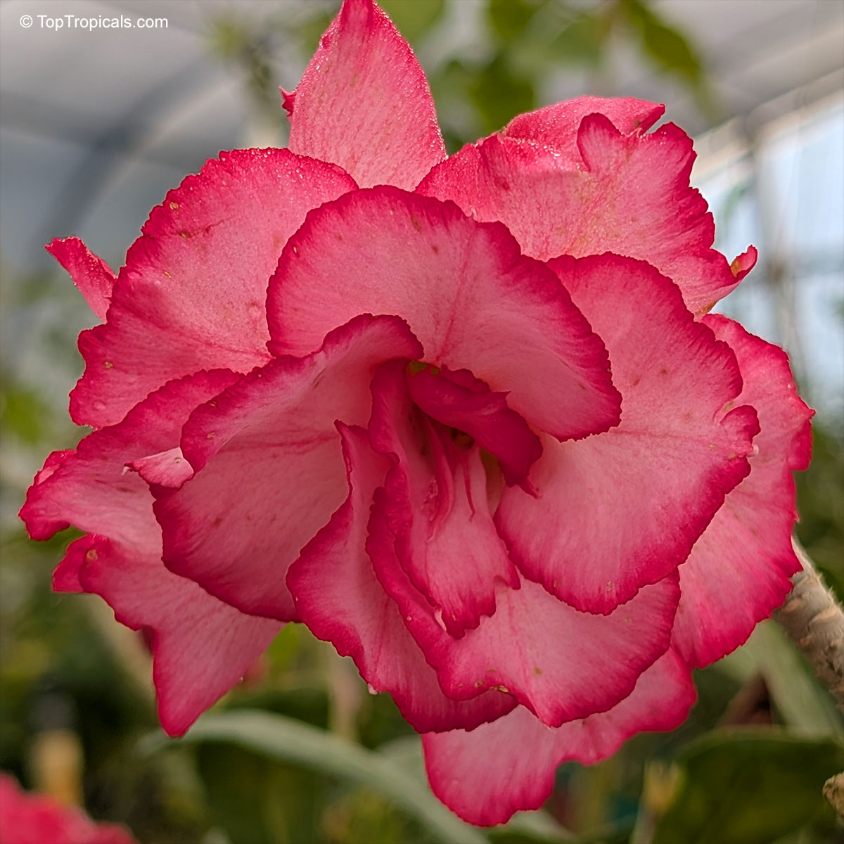 Adenium 'Giant Diamond' blooms with large double flowers in vivid pink edged with intense fuchsia.