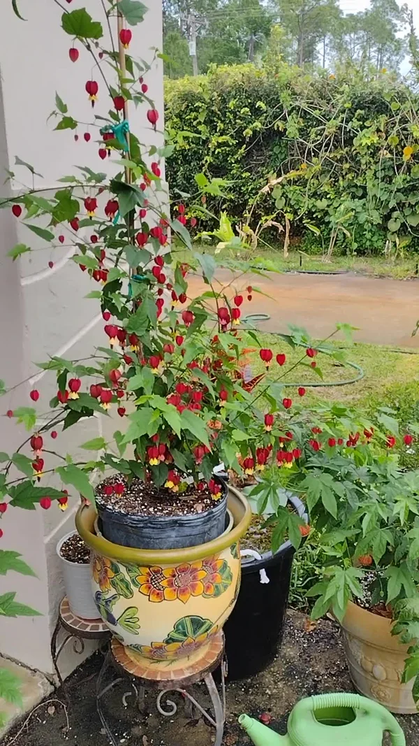 Common names: Flowering Maple, Trailing Abutilon, Brazilian Bell-flower