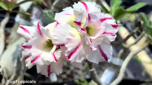 Adenium (Desert Rose) 'White Rabbit' : The multi-layered ruffled blooms create a soft yet striking contrast, making this a truly unique and eye-catching addition to your garden.