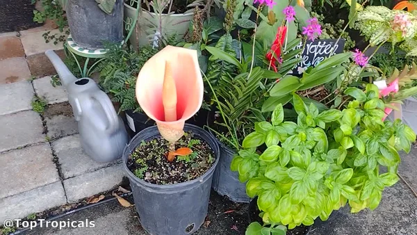 The single leaf dormant in winter, then in spring the plant shoots out this fantastic flower again. It is relatively cold hardy tropical and can survive cooler winters during dormancy. Can be easily grown in a pot as a house plant.