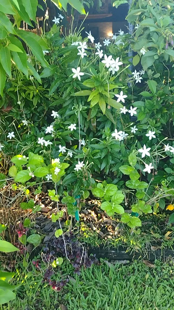 Marmelada, Ornamental Alibertia. Great choice for those who need to add a short and yet impressive shrub into landscape. The plant stays 2-3 ft tall, easy to prune if needed, with beautiful "shooting" white flowers, slightly fragrant. Very nice landscape exotic shrub for small spaces.