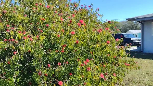 How to get a big flowering bush quickly? Calliandra (Powderpuff) - is your answer for blocking the unwanted view!