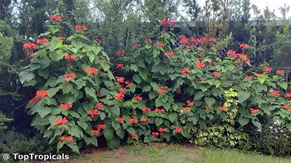 Java Glorybower, Mary Jane. Large velvety leaves and the large quantity of red-flower clusters. It is an important medicinal plant in China. Beautiful red flowers, a marvelous ornamental plant for the garden.