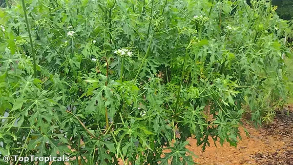 This fast-growing perennial thrives in full sun to partial shade, making it perfect for food forests or backyard gardens. Easily propagated from 6-12 inch stem cuttings, Chaya can reach 6-8 feet tall and can be continuously harvested with proper care. It's a beautiful addition to any garden, attracting butterflies and hummingbirds with its white flowers, and is resilient to drought and various soil types.