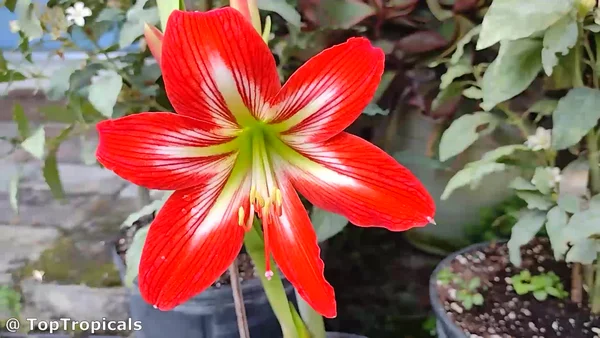 The Amaryllis Minerva is a striking beauty with large red flower that has a white star center and a lime green throat. It is an excellent choice for a houseplant due to its stunning and vibrant appearance, which adds a splash of color. It has large, striking red flowers, adorned with a white star at the center and a lime green throat. These beautiful blooms provide a festive touch and are large enough to be a centerpiece in any room. Additionally, Amaryllis is easy to care for; it thrives indoors with minimal maintenance, requiring only regular watering and bright, indirect light. This makes it not only a decorative asset but also a convenient option for those who appreciate plants that do not require extensive care.