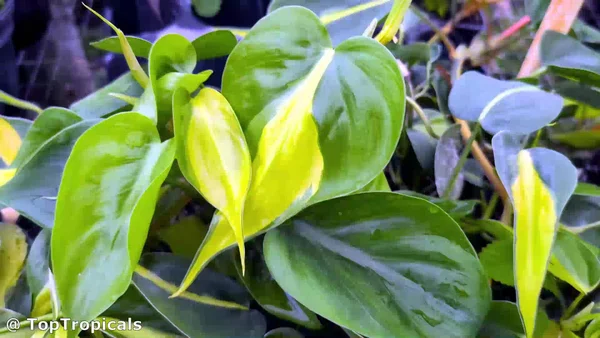 Philodendron 'Brazil' charms with heart-shaped leaves painted in lime and deep green for a bold, tropical look.