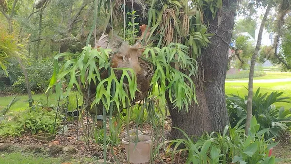 Showy, tropical looking epiphyte that can be grown on a tree or in a large hanging basket. It is able to grow high in the trees of the rainforest, often grows in large masses.