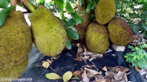 Jack-edak is a highly recommended variety grown in TopTropicals garden from a seedling of Cheena (Jackfruit x Chempedak) that fruited for us within 3 years from planting. The fruit (20-25 inches size) is probably the best we ever tasted! It is super sweet, crunchy and has a rich, pleasant, excellent flavor. It has very little latex which makes it easy to handle when cutting up. The tree produces at the very base of the trunk, so you can prune it as short as you want. Our tree survived light frosts as well as 48 hours of 3ft flooding, with no damage!