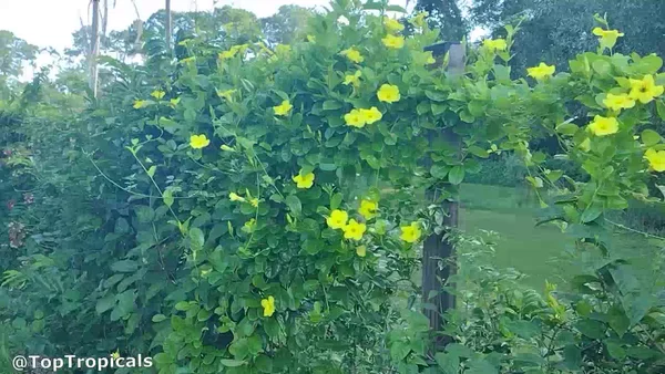 Common names: Yellow Mandevilla, Yellow Dipladenia, Wild Allamanda