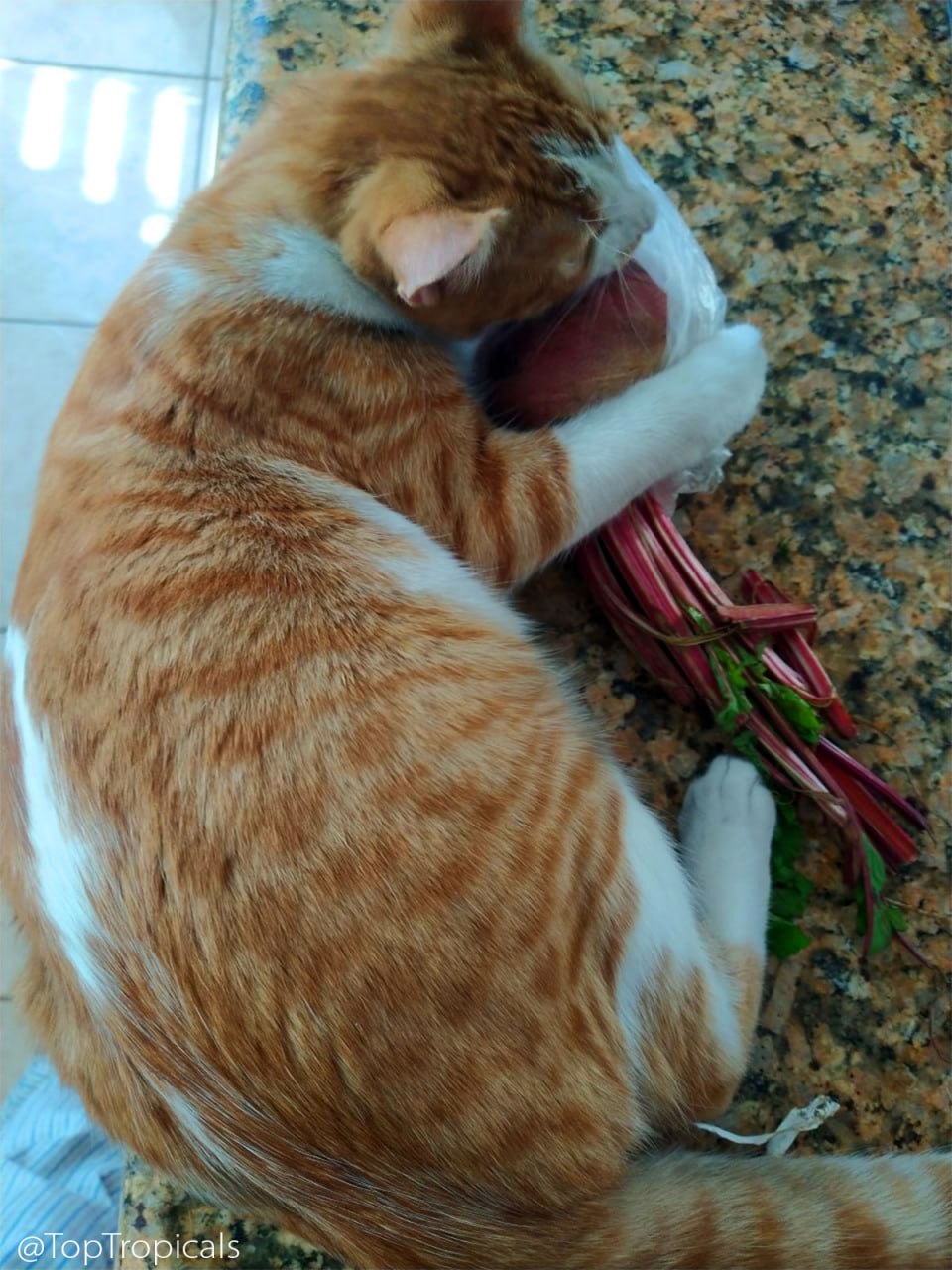 🐈📸 Cat Jacques is snacking on raw beets at TopTropicals PeopleCats.Garden.