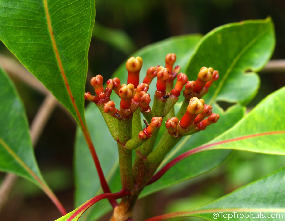 - 🌿 That would be Clove, from the tropical tree Syzygium aromaticum. The spice is actually the dried, unopened flower buds. They turn from pink to brown as they dry and release that powerful, warm aroma we associate with baking and holiday dishes. Cloves are native to the Moluccas, or Spice Islands of Indonesia, and are still grown widely across the tropics. The clove tree is ultra-tropical and very challenging to grow outside the true tropics, which is why it’s so rare in plant collections.
