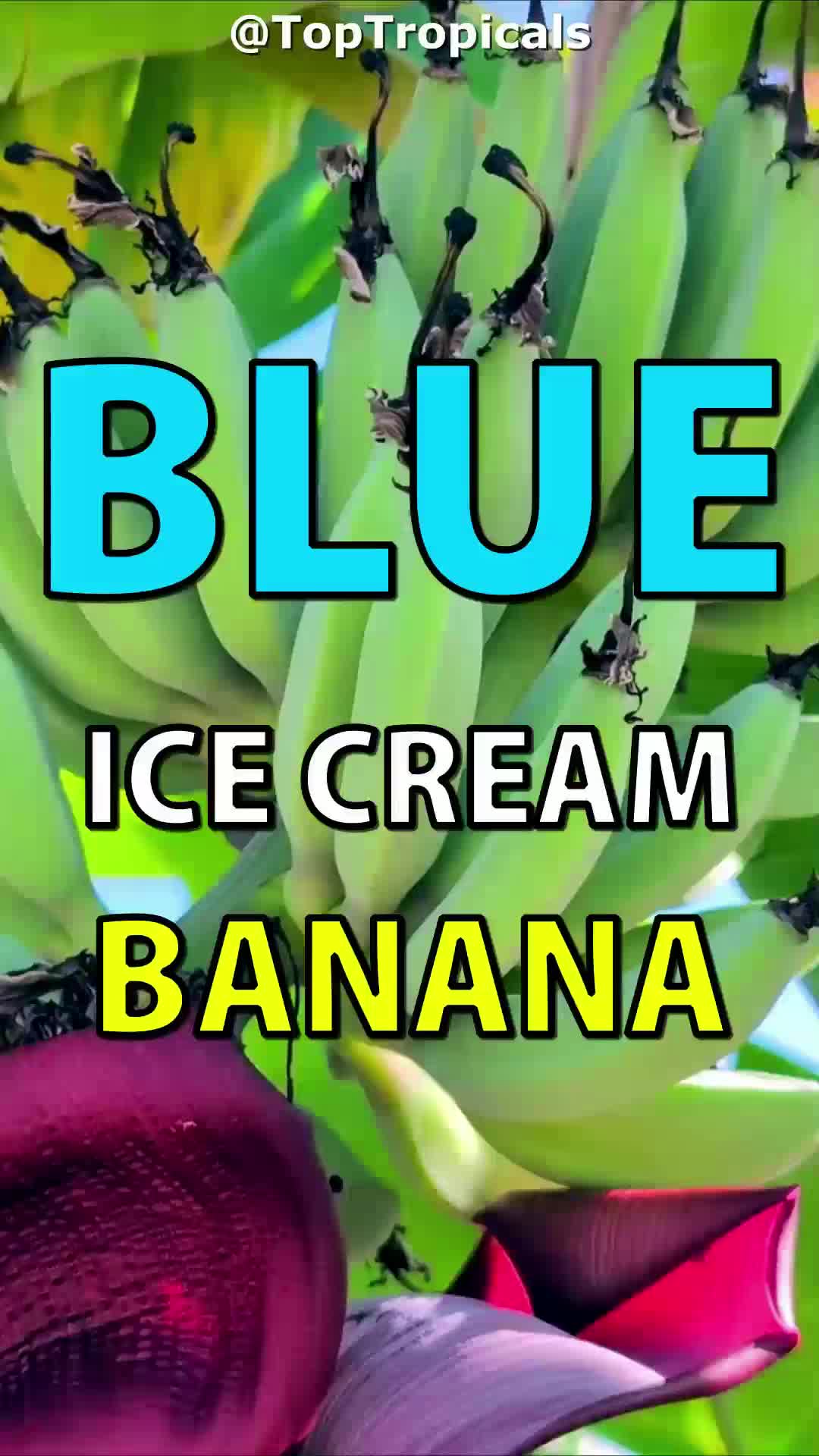 - 🔵 First of all… it's blue. Yes, really. When the fruit is unripe, it has a frosty blue-green tint - especially striking in the sun. These short, chunky bananas are only about 4 inches long and grow in beautiful bunches under mauve-colored flowers. The whole plant is a tropical showstopper.