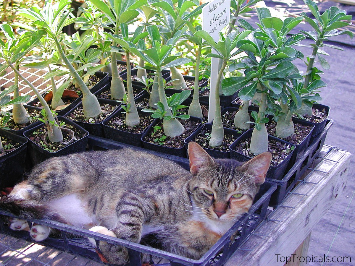 🐈📸 Visitor Cat found his comfy spot with Desert Roses at TopTropicals PeopleCats.Garden