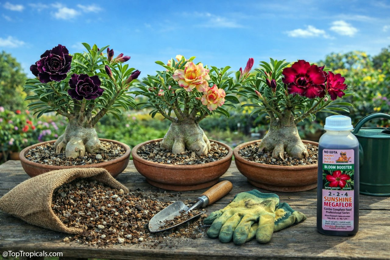 Bloom boosters (high phosphorus) support flowers and caudex growth.