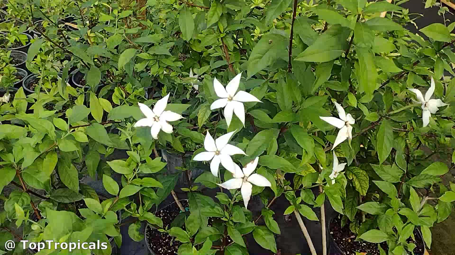 Its white flowers, which resemble those of gardenias, fill the air with a pleasant fragrance.