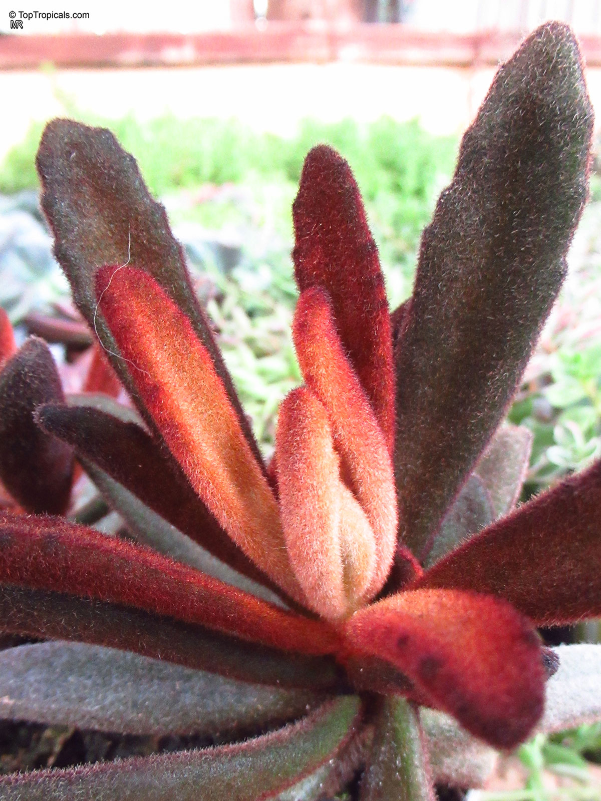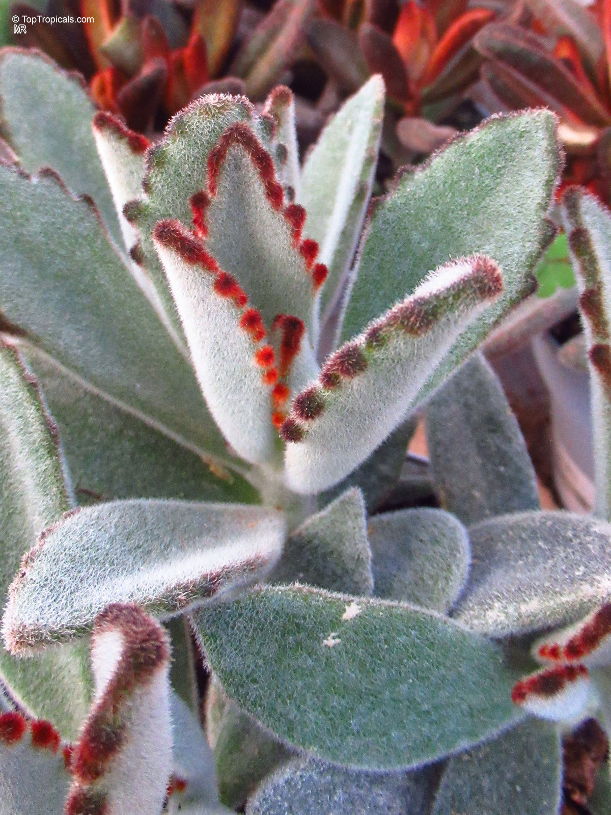 Kalanchoe serrata is notable for vegetatively growing small plantlets on the fringes of the leaves; these eventually drop off and root.