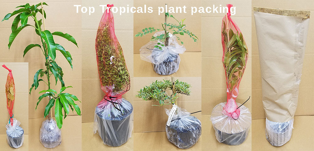 We use many different packing meterials and fillers to ensure plants have a safe trip: mesh, craft paper, sleeves, air pillows, cardboard inserts, etc.
